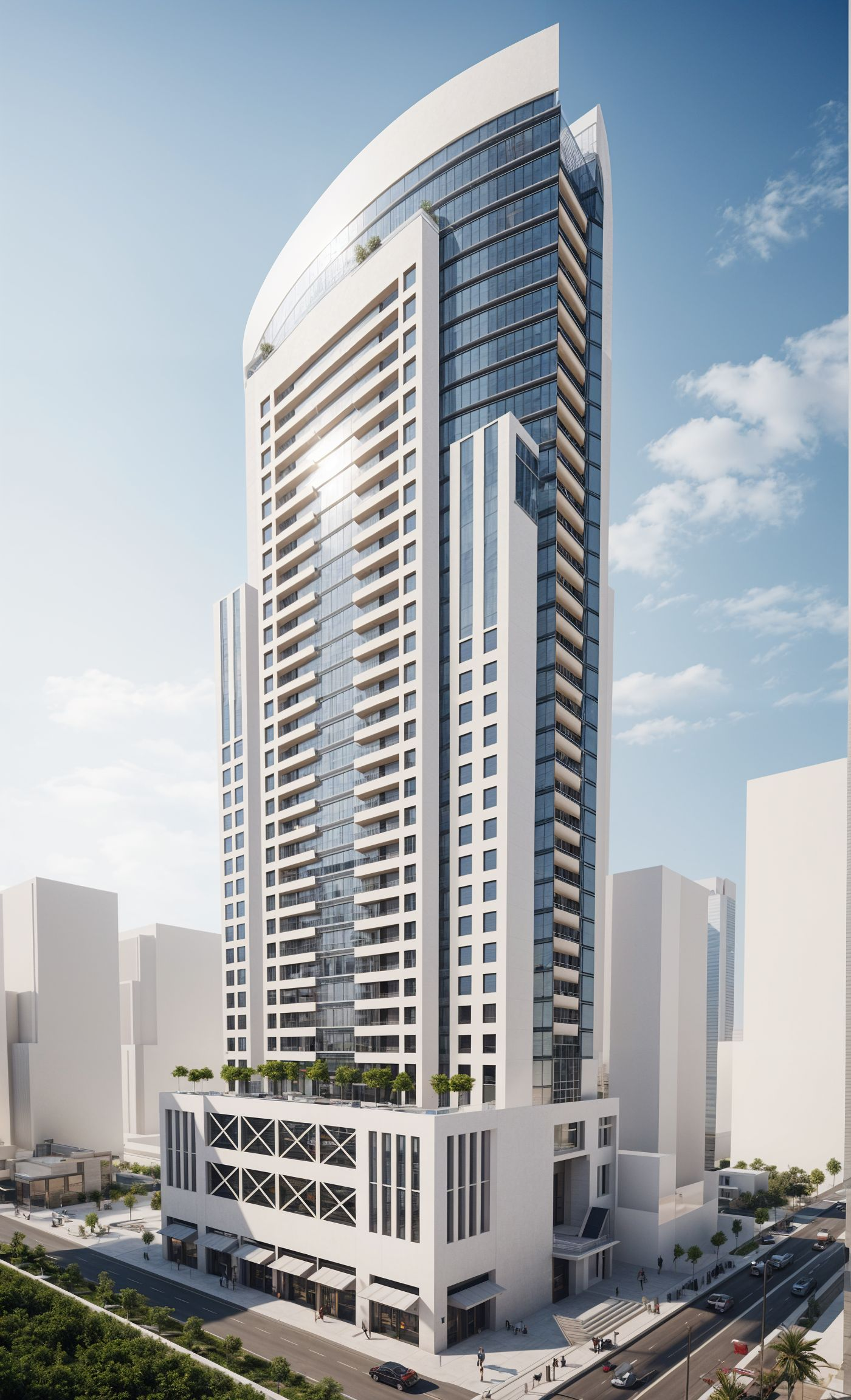Rising gracefully against the clear skies of the Emirates, Burj Al-Nahda stands as a modern emblem of ambition and unity. The 30-story skyscraper blends timeless white and cream façades with shimmering reflective glass, capturing both the traditions of the past and the promise of the future.