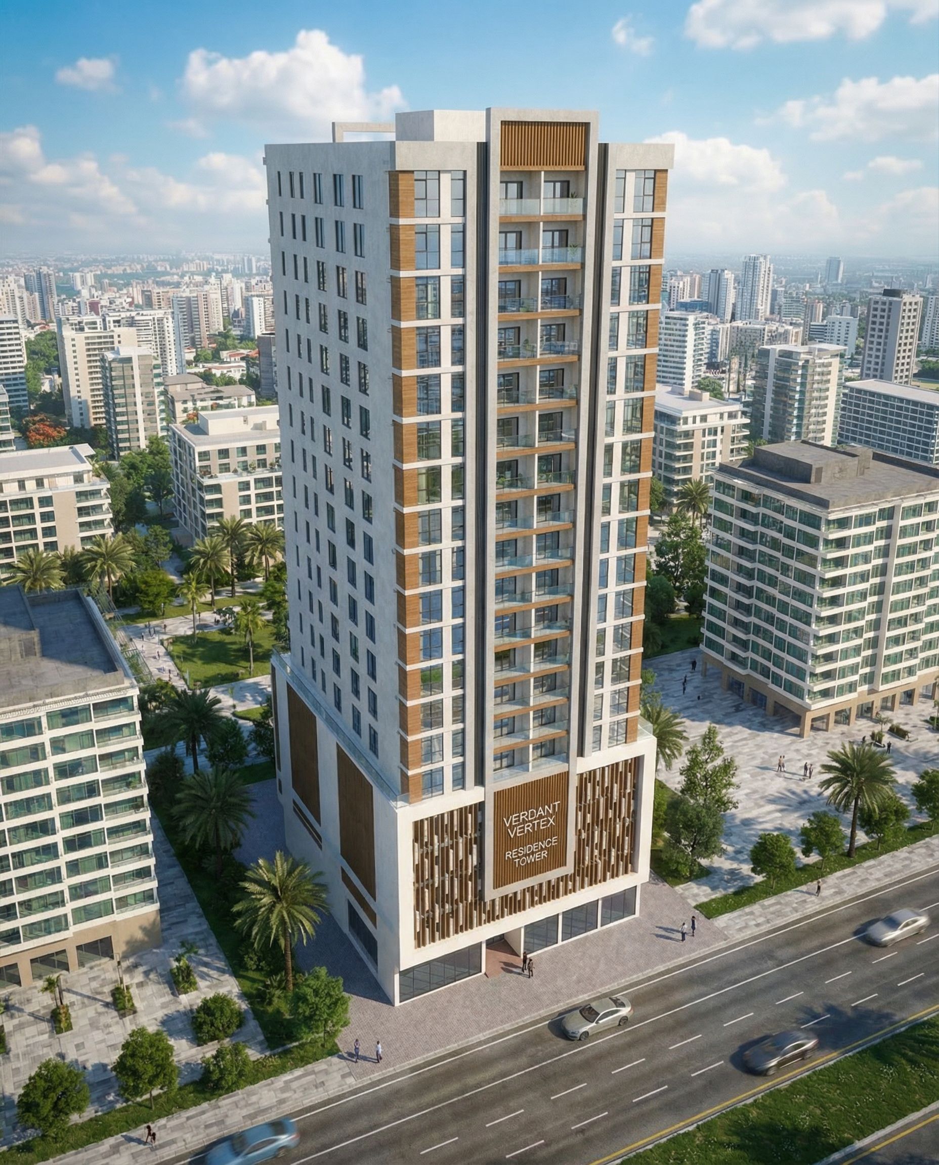 Rising with quiet confidence above the urban fabric, Verdant Vertex is a statement of balance—where vertical elegance meets grounded living. Designed for those who value clarity, light, and refinement, the tower redefines contemporary city life through proportion, material honesty, and timeless form.